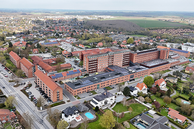 Luftfoto af Regionshospitalet Randers. Pressefoto.
